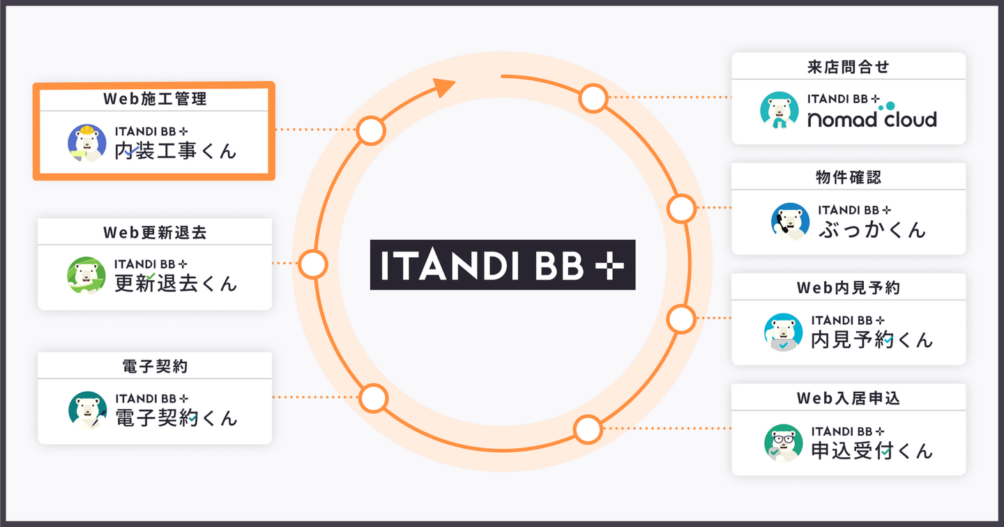 入居以降の管理業務をサポートするものは、更新や退去時に発生する入居者とのコミュニケーションを行う「更新退去くん」というシステムを提供していたので、その後に発生する業務もシステム化していこうとなったのが「内装工事くん」の始まりです。イタンジの既存システムとの連携を活用して一気通貫で賃貸に関する全ての業務が完結することを目指して走り出しました。
