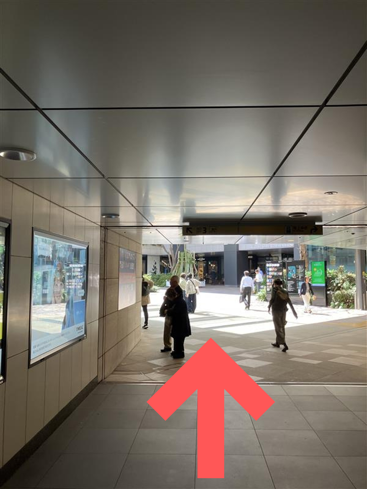 エスカレーターで1階まで上がり、外の空気を吸いながら進みます。