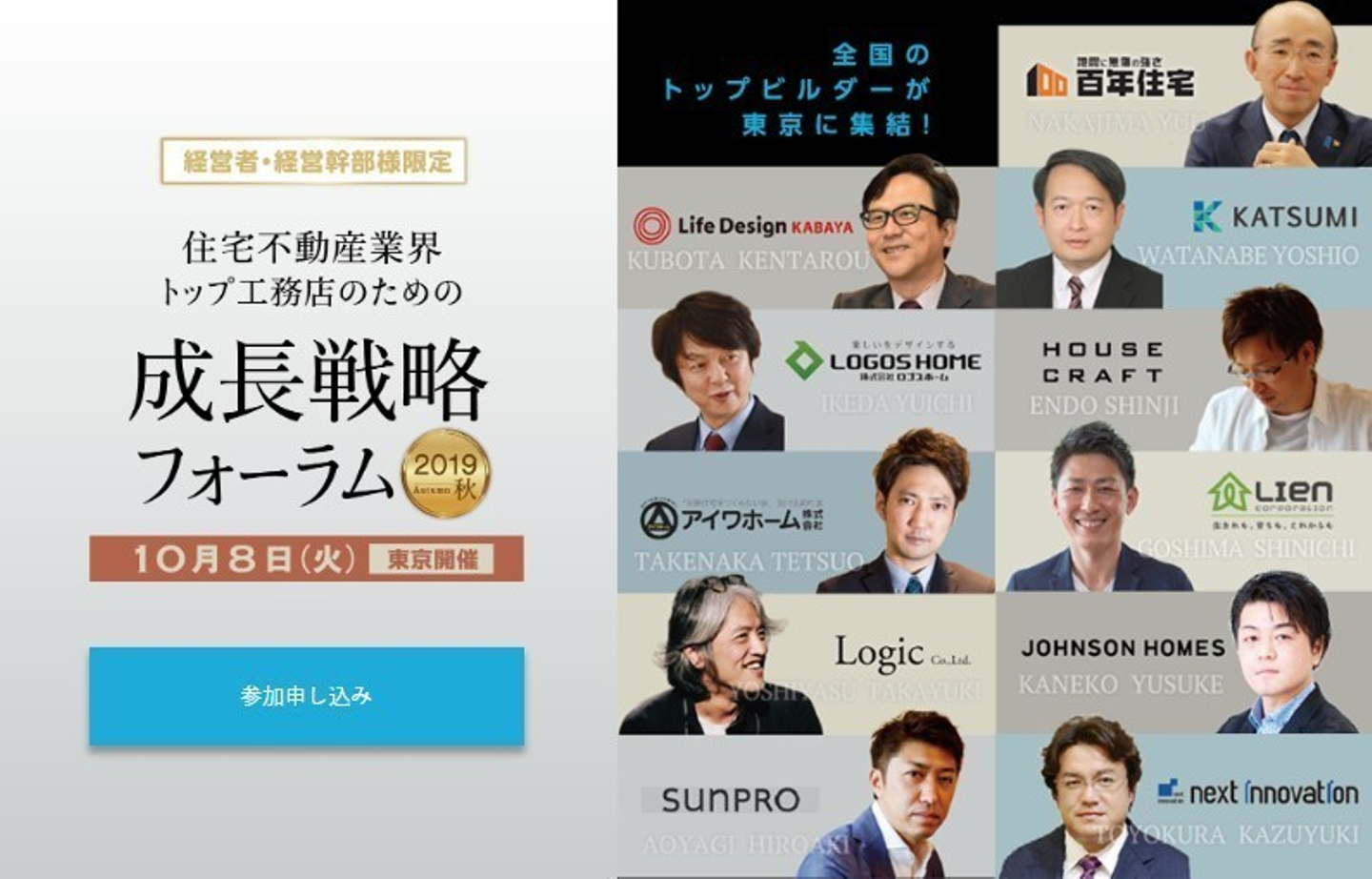 「住宅不動産業界 トップ工務店のための成長戦略フォーラム2019秋」!!