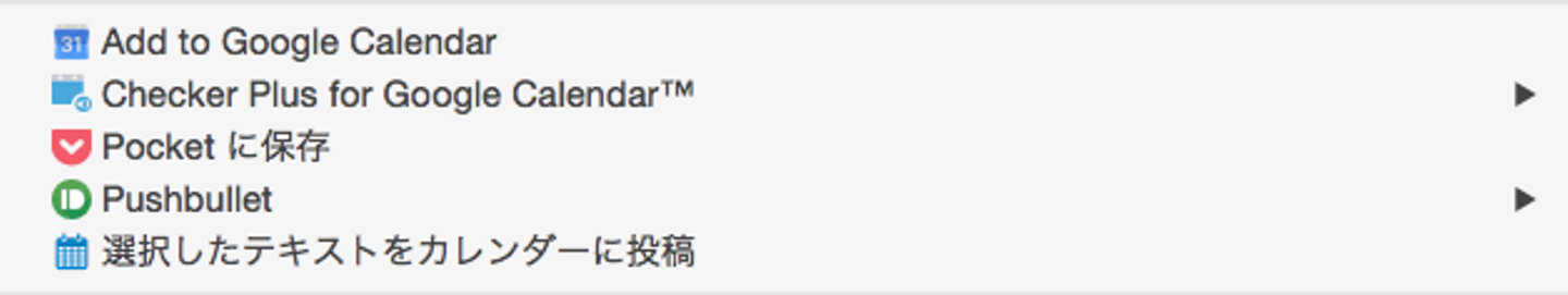 ドラッグして選択>右クリック>選択したテキストをカレンダーに投稿