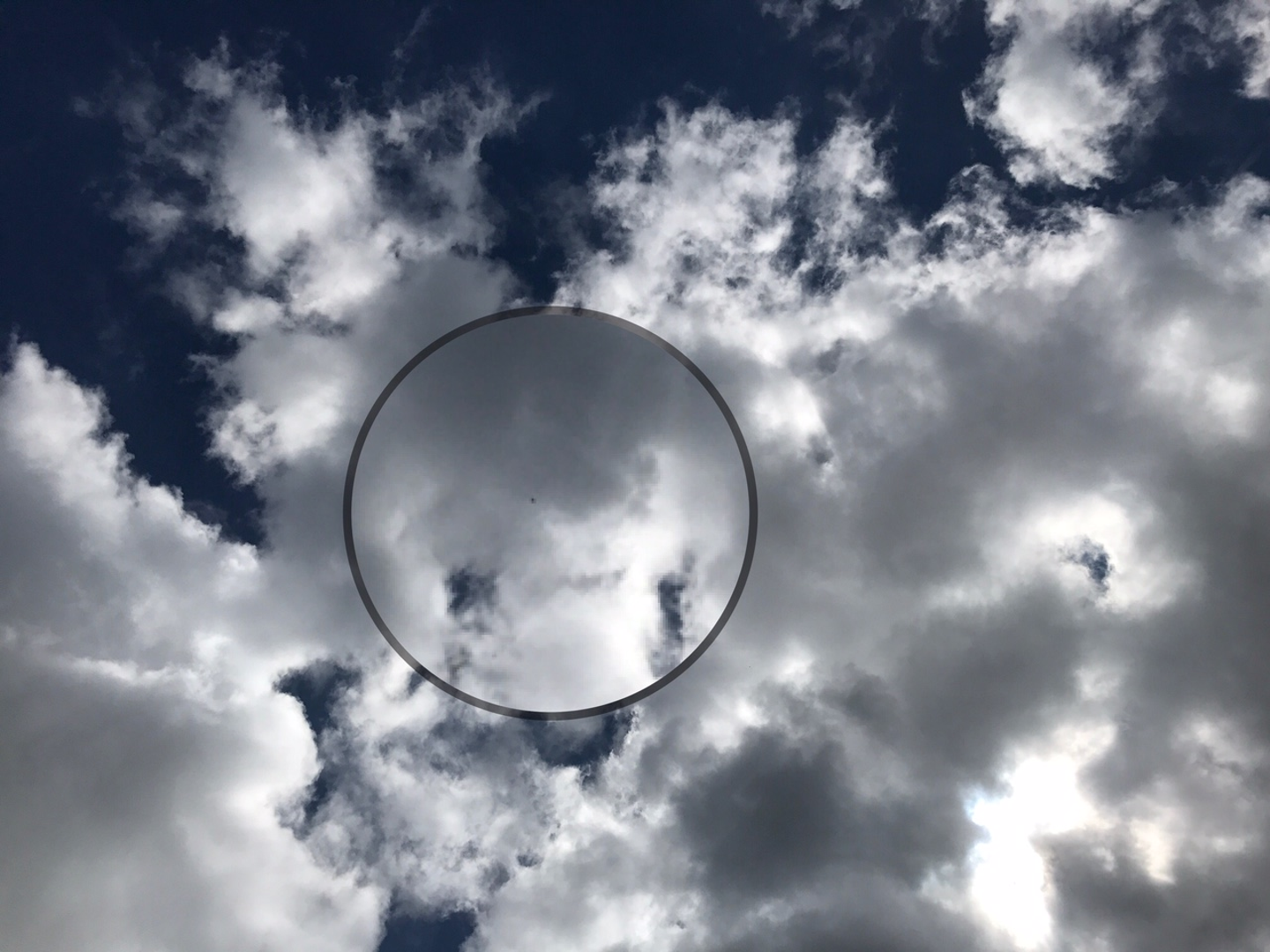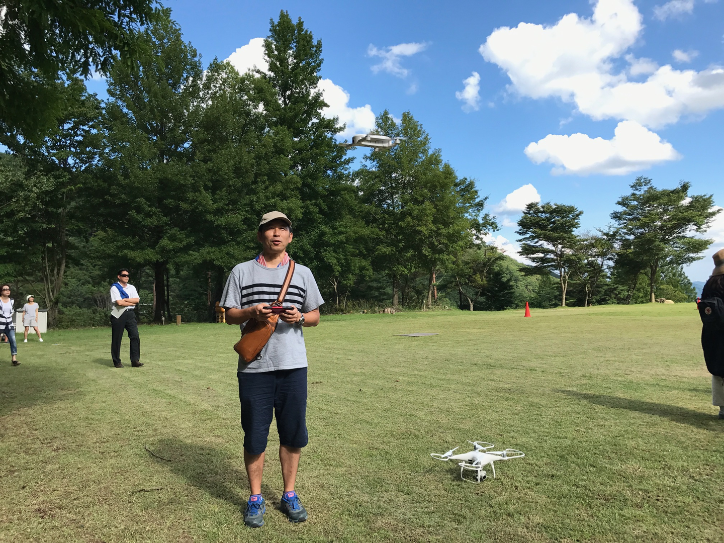 答えは、この円の真ん中にある分かりにくすぎる小さな黒い点…これが、高さ150mを飛行しているドローンです!(笑)
