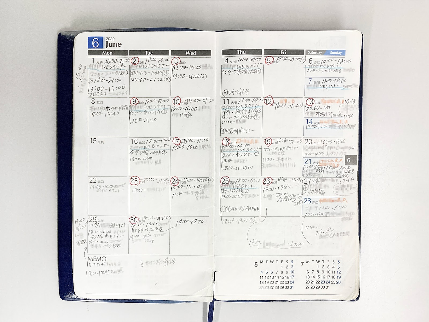 ▲予定でびっしり埋め尽くされるスケジュール帳(2020年6月)