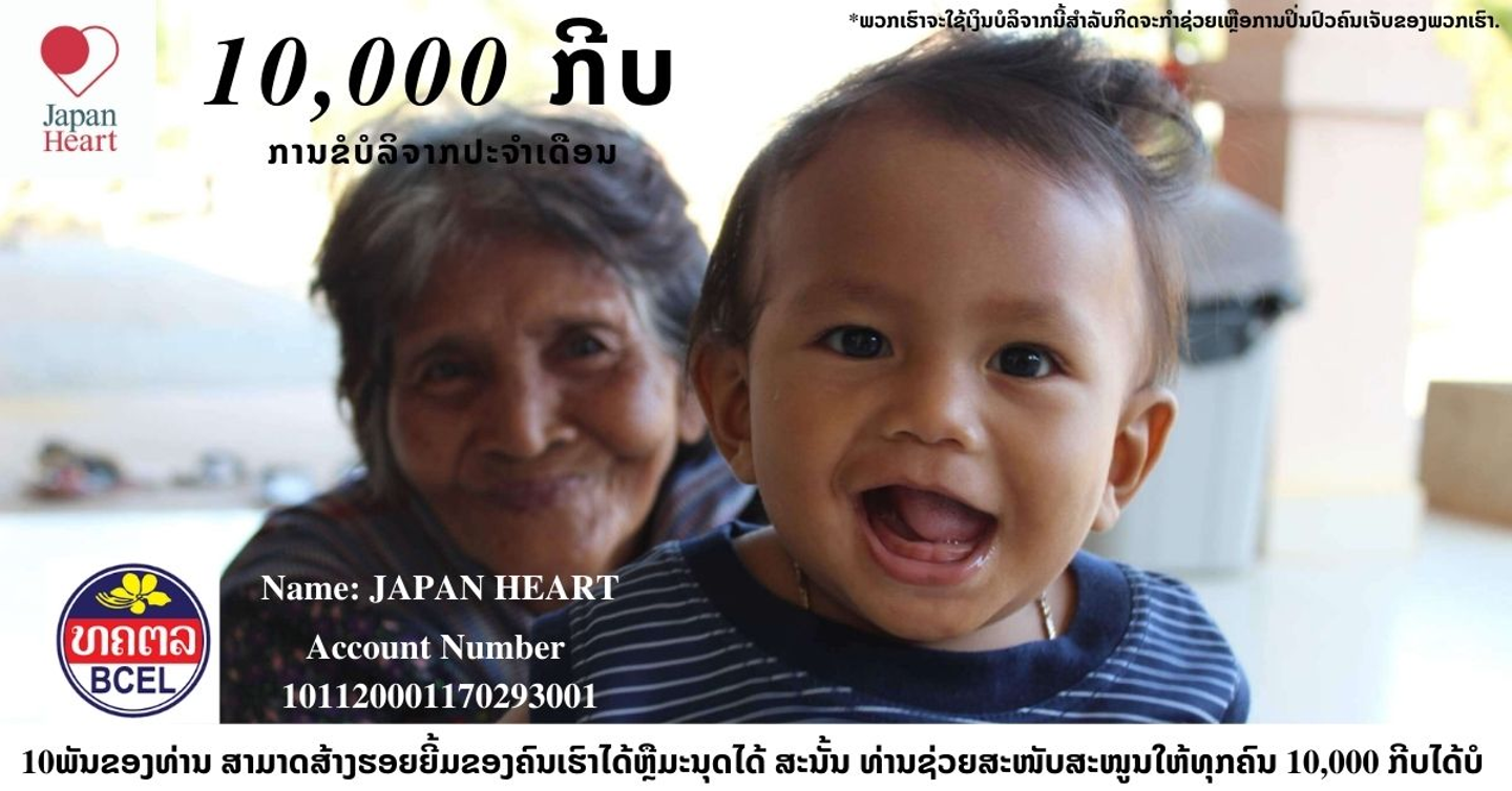 ラオス国内向けのFacebookで定期的に発信しているご寄付の呼びかけ写真です。【10,000KIPで救える1人の笑顔。あなたの力で救いませんか?】と、ラオス語で書いてあります。こんなキャッチコピーを考えたりもしています。