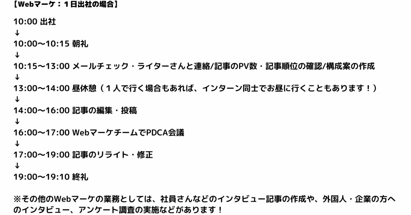 ◆Webマーケインターンの1日のスケジュール