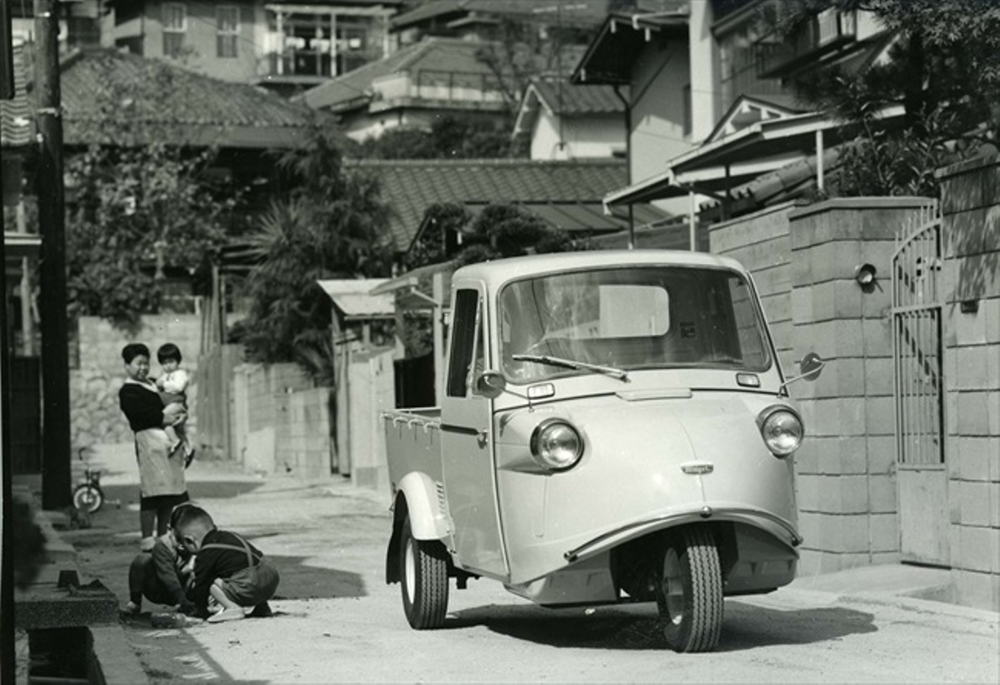 映画などにもよくでてくるが、戦後復興期に日本で普及していた三輪自動車のダイハツ・ミゼット。