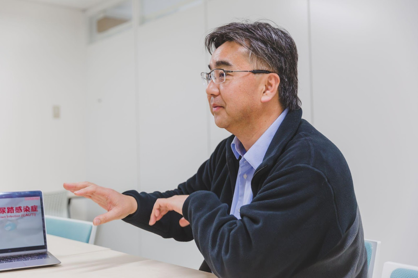 大学を卒業して十数年パナソニックでソフトエンジニア業務をしていた頃は、医療とは全く無関係なことをずっとやっていました。会社を辞めてから知り合いと何か面白いことをやろうという話で1回会社を作ってみたのですが、スタートアップや起業に関して細かいことを理解しないままやっていたので全く上手くいかなくて。その後、紆余曲折あって事業を辞めようとしていた頃に、インドでバイオデザインに参加しないかという話をもらって、2018年の1月から約1年間、デザイン思考のプロセスをもとにして臨床現場の未解決の課題を探し事業化に取組む「バイオデザイン」プログラムに、インド人のメンバーと一緒に取り組みました。当時現場観察を通じて発見した様々な課題から選んで解決に取り組んだもののひとつがカテーテル関連尿路感染症(CAUTI)で、インド人の共同創業者はインドに住んでいるので、現在は日本とインドで事業をやっています。