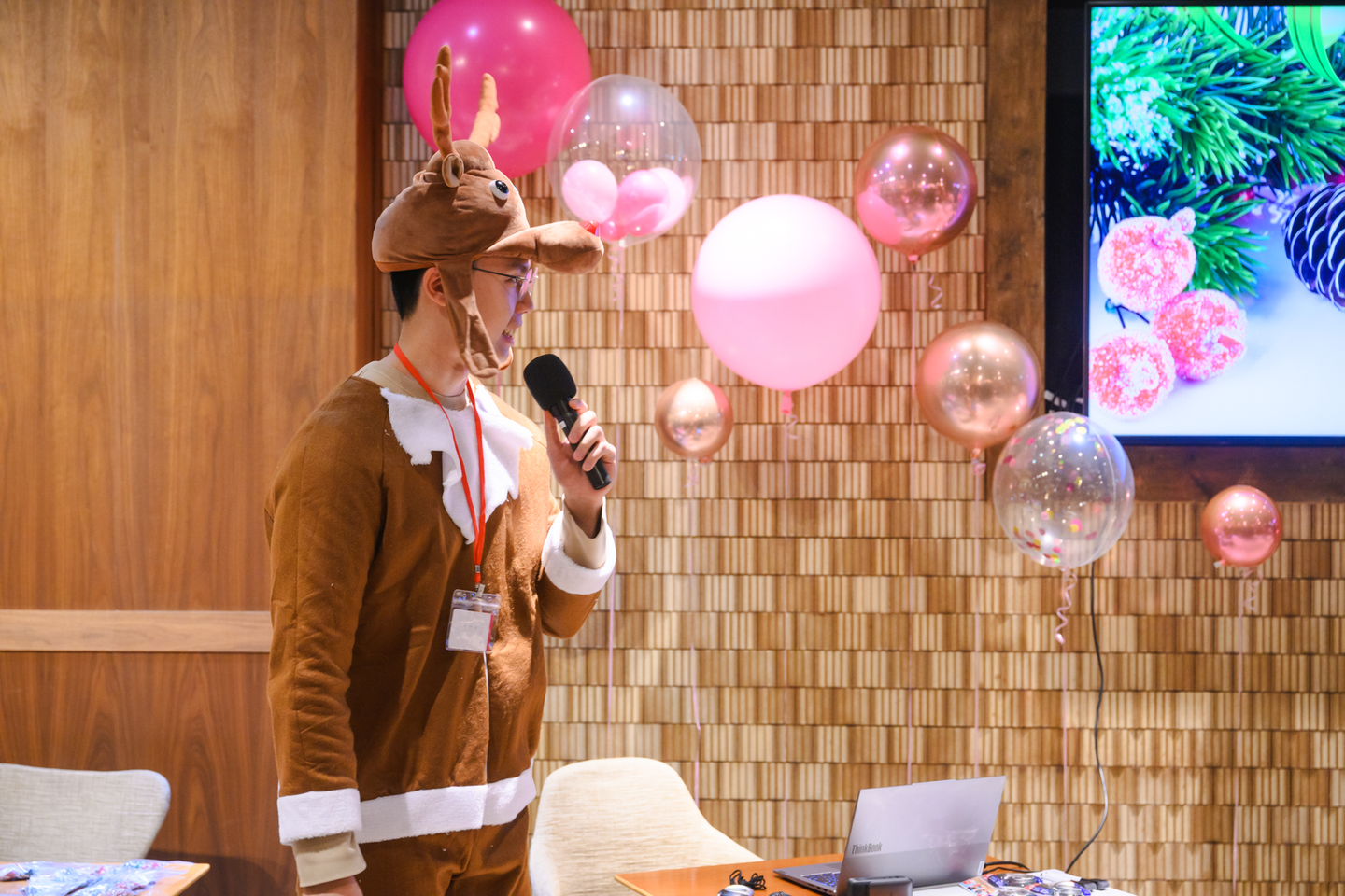 弊社では年に2回、全体会(社員総会)を開催しています。今回は、昨年12月に開催されたクリスマス会の様子をお届けします!社員の雰囲気や会社の文化が伝われば幸いです。