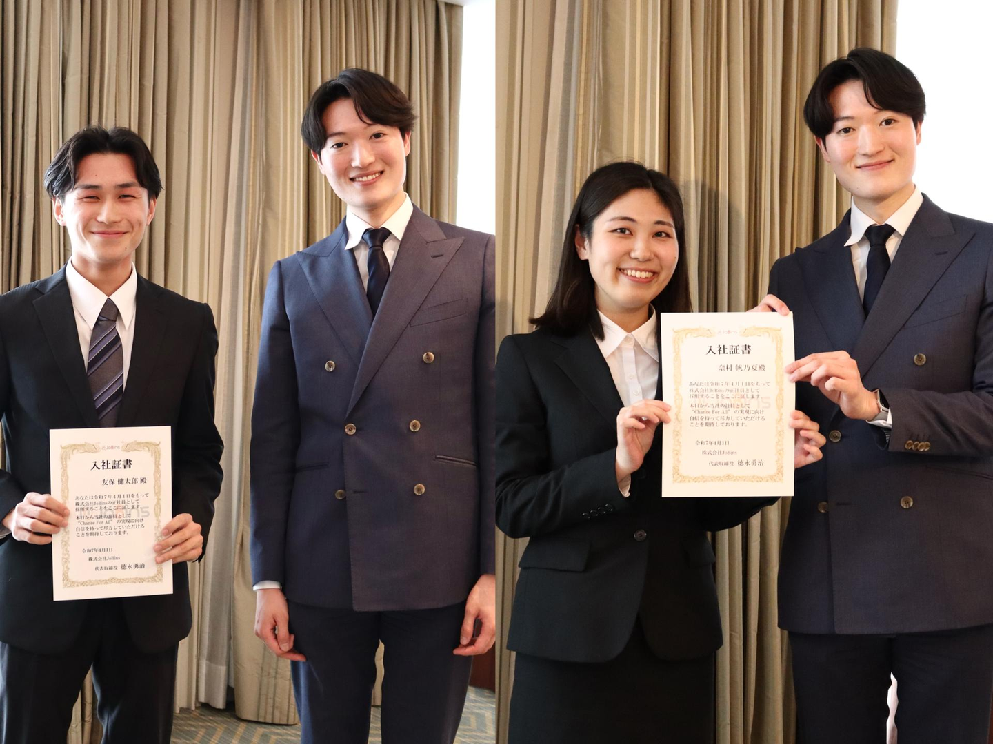長くインターン生としてJoBinsに貢献してくれた彼らが、いよいよ“正式に”仲間として迎え入れられるこの瞬間。