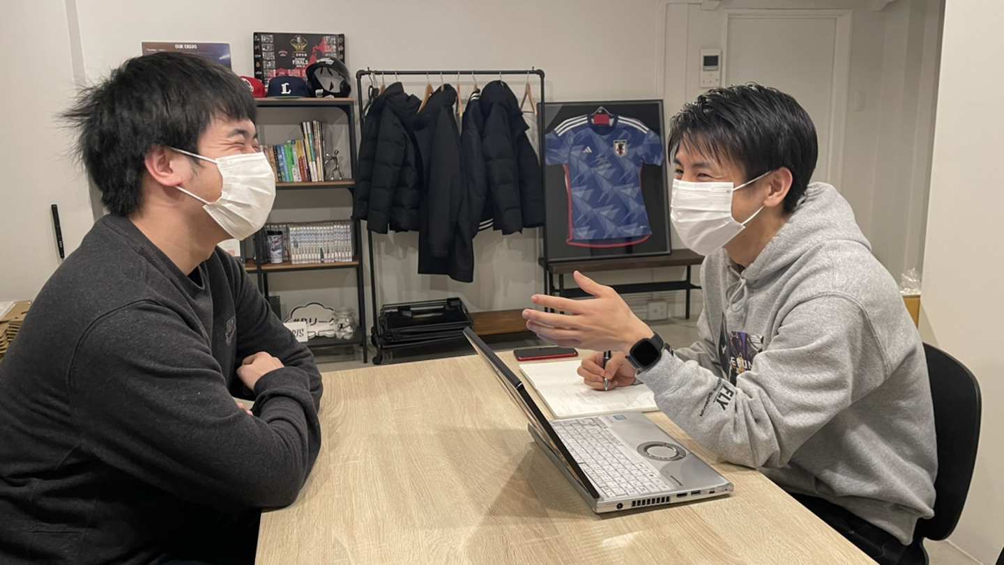 元々、学生時代にプロスポーツの興行に関わる場所でアルバイトをしていました。アルバイト先の社員さんに小林さん(弊社代表)の知人がいらっしゃり、その方の計らいで小林さんと直接お会いする場をセッティングいただき、選考~採用をいただくことが出来ました。