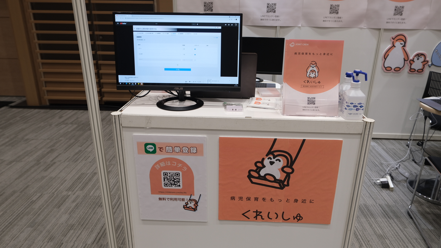 BebyTechを事業として掲げる弊社も、“くれいしゅ”という病児保育サービスをメインに出展させていただいたからです。