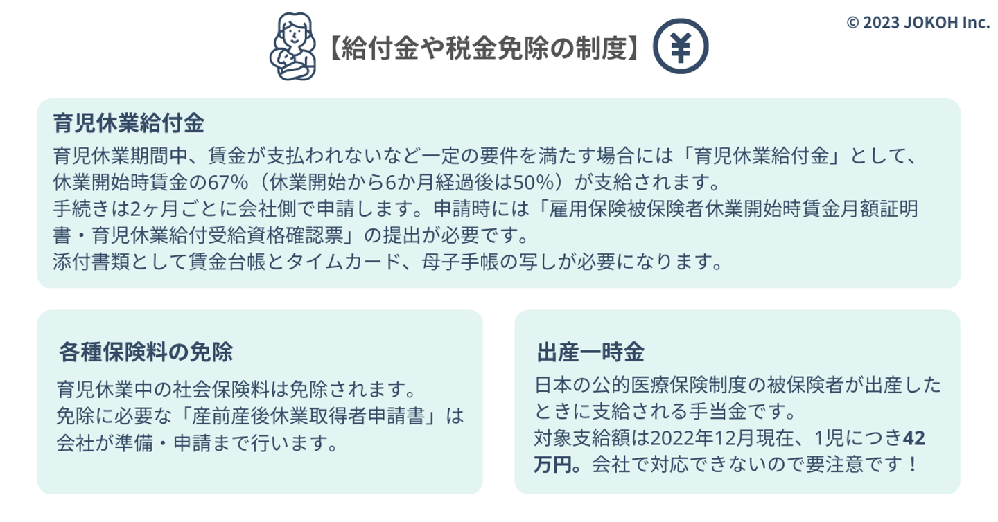 給付金等の手続きについては、ご自身で直接行政に行っていただくものが多いですが、会社でご準備できる書類もありますので、代表的なものを紹介します。