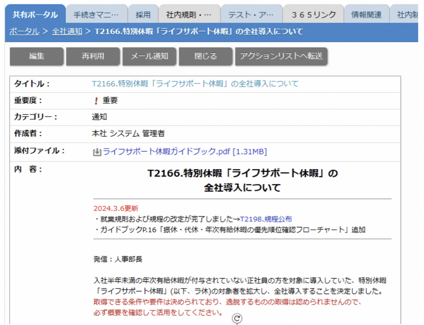 ※ライフサポート休暇についてはガイドラインを社内ポータルサイトで公開中!