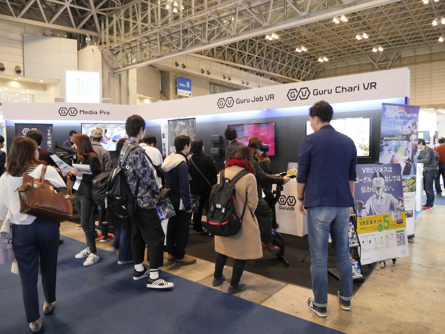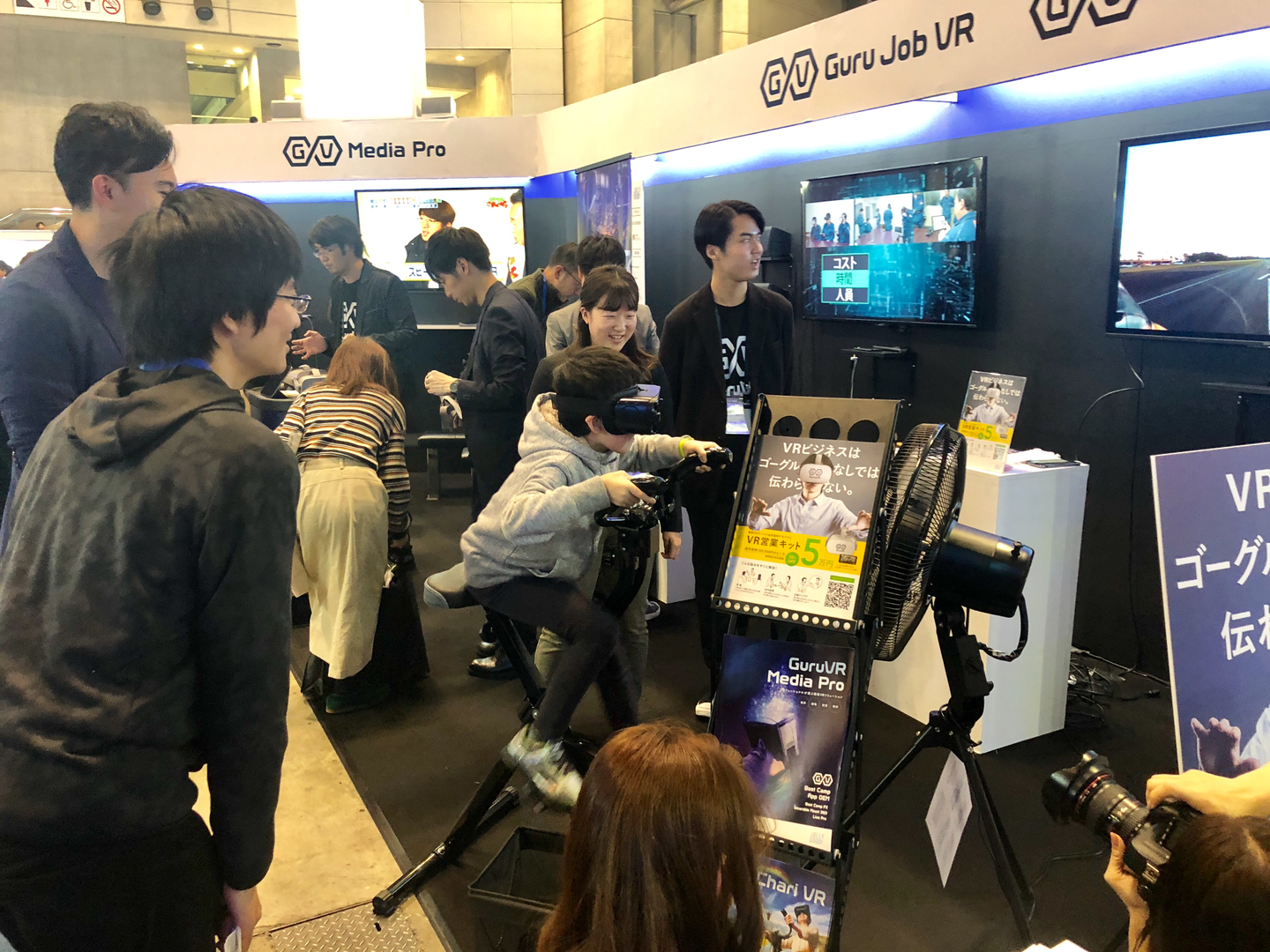 体験展示では、短期間で簡単に高精度なVR事業を始めることができる「GuruVR Media Pro」、VR×AI人材育成ソリューション「Guru Job VR」、そしていつも大人気のフィットネス×観光VRソリューション「Guru Chari VR」など、人気コンテンツ盛り沢山😊