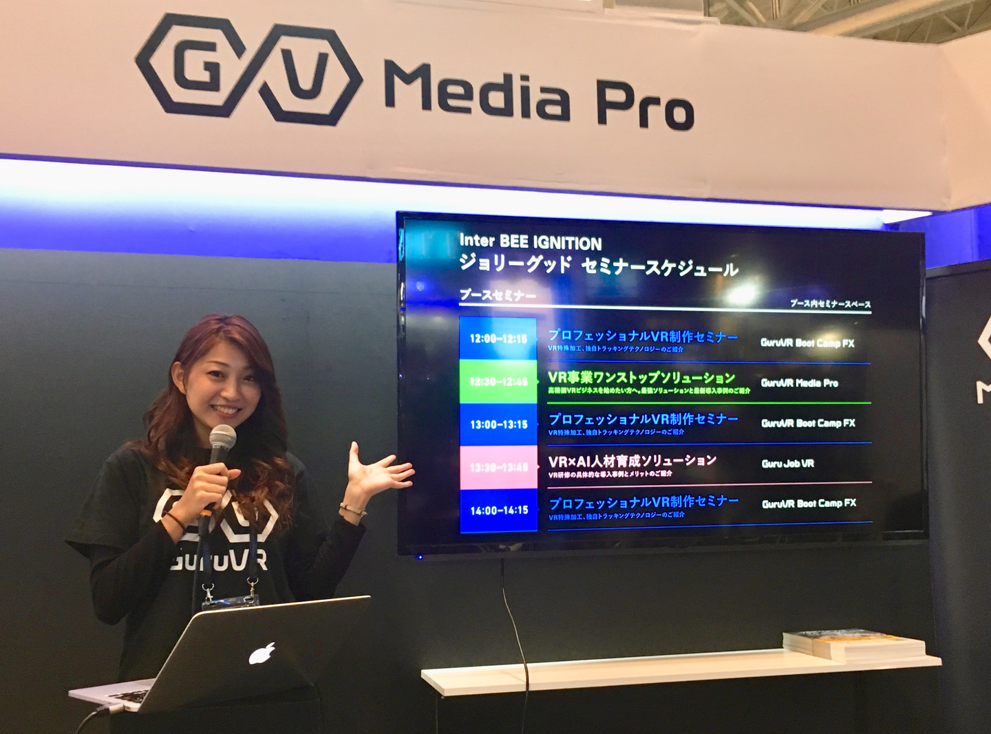 会期中毎日開催したブース内セミナーでは、VRの特殊加工技術や、短期間でVR事業を始められるワンストップソリューション、活用事例などジョリーグッドのVRビジネスについてお話しました。