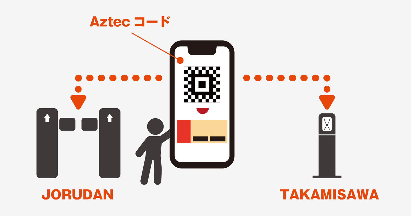 具体的には高見沢サイバネティックス製の改札ゲートと、ジョルダンモバイルチケットが連携。チケットシステムに標準搭載の2次元コードを、改札に取り付けられたカメラで読み取って認証することができます。ぜひブースにて、スマートフォン1台で、チケットを購入(無料)→スムーズにゲート通過ー。といったプロセスを体験してください。※事前準備として乗換案内アプリのダウンロードをお忘れなく。