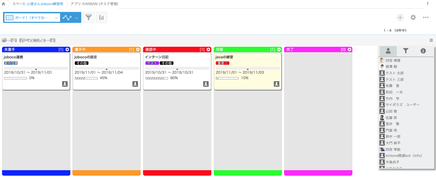 KANBANに限らず、kintoneとその連携サービスはweb上に有償・無償に関わらず、設定方法や工夫の仕方がシェアされていて、本当に助かります。今回の設定でも色々参考にさせていただきました。