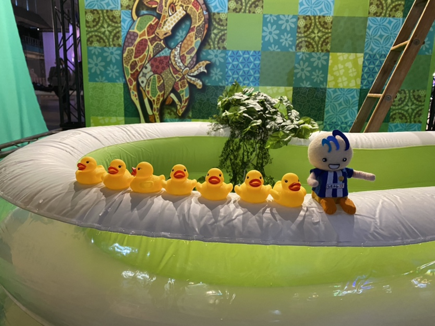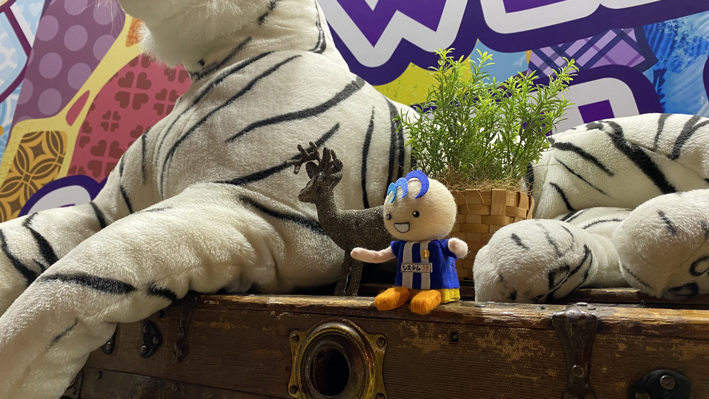 Twitterにもこの盛り上がりを載せるべく、ジョイゾーのマスコット「ジョイパーくん」を連れて会場内を撮影してきました!
