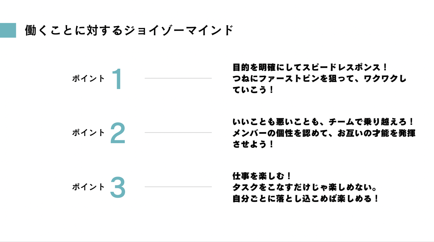 ジョイゾーメンバーへの愛やリスペクトが感じられて、とても温かい会社だなぁと思いました。