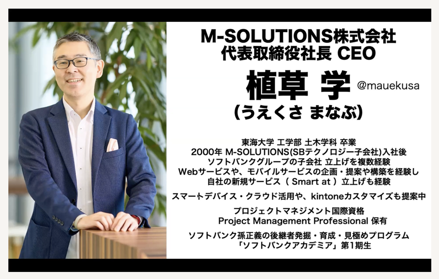 植草さんは、2000年にM-SOLUTIONS株式会社に入社後、会社の立ち上げを複数経験したのち、2019年にM-SOLUTIONS株式会社代表取締役社長に就任されました。