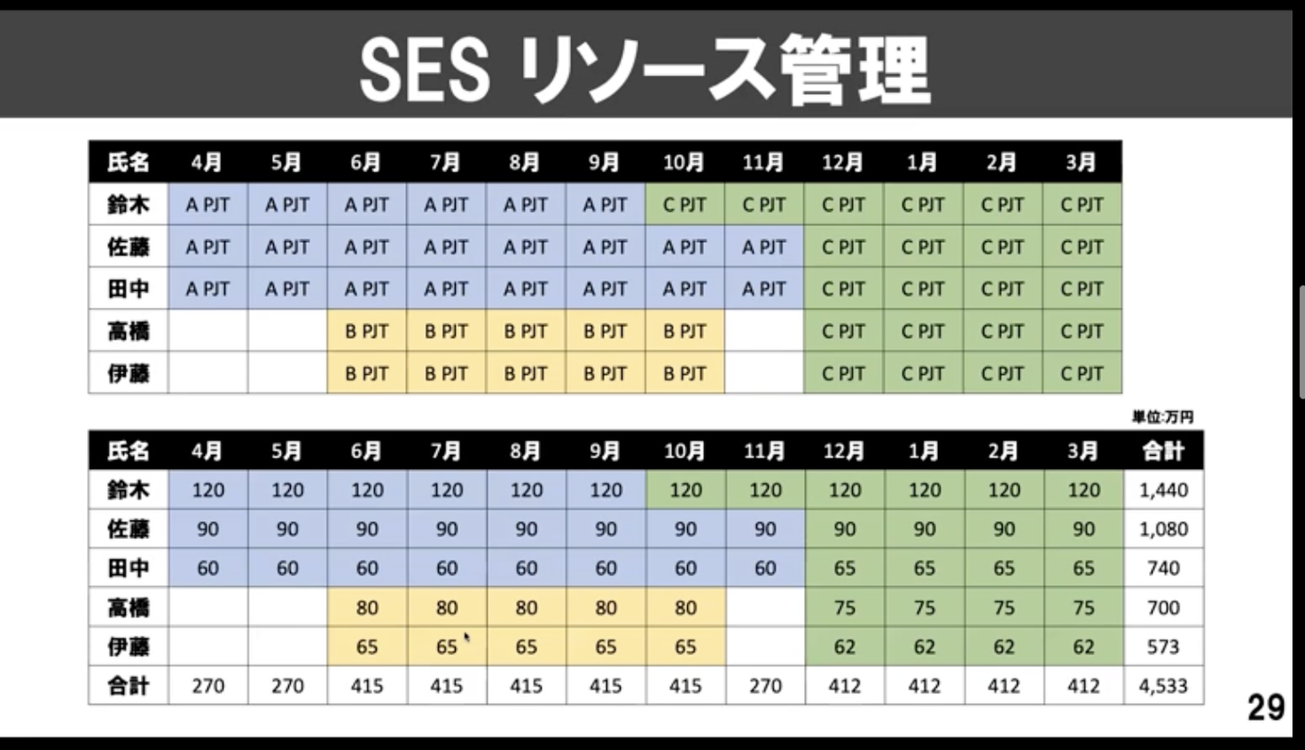 SESは受託契約で、納品物の成果に対する責任を持たず、時間精算(Time & Material契約)の契約方法です。時間精算の場合、過去の実績を見て単価が決まり働いた時間に対してお金が発生します。