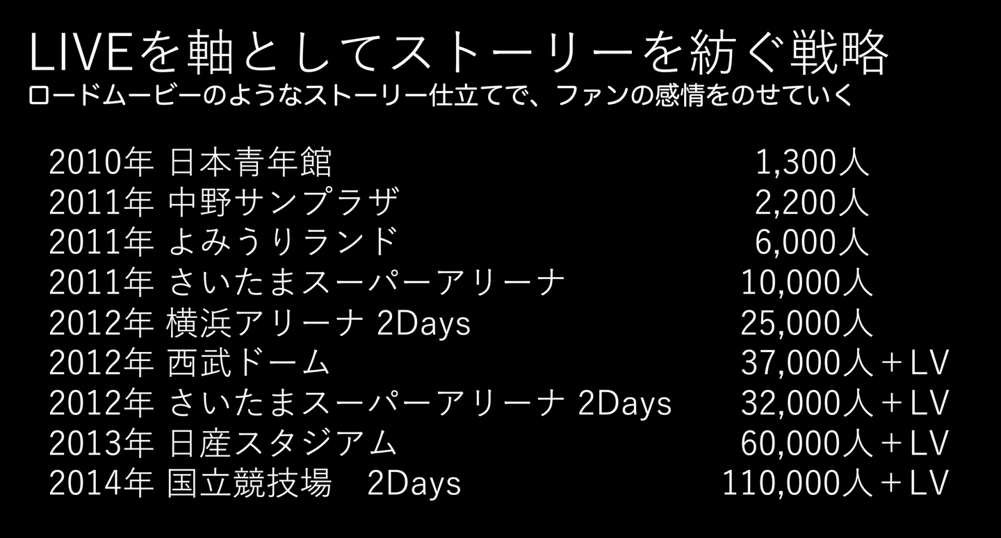 ライブを軸としてストーリーを紡ぐ戦略