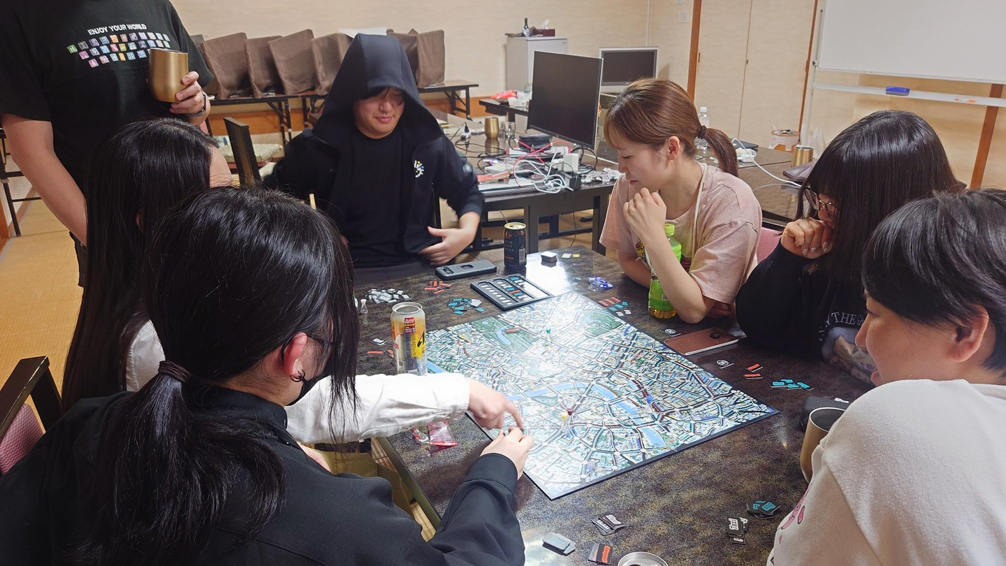 合宿中は、手持ちの資源を使って無人島を開拓し、その発展の早さを競う『カタン』や、怪盗1人と刑事チームに分かれて、刑事が怪盗の居場所を推理し逮捕を目指す『スコットランドヤード』といったゲームで盛り上がりました。