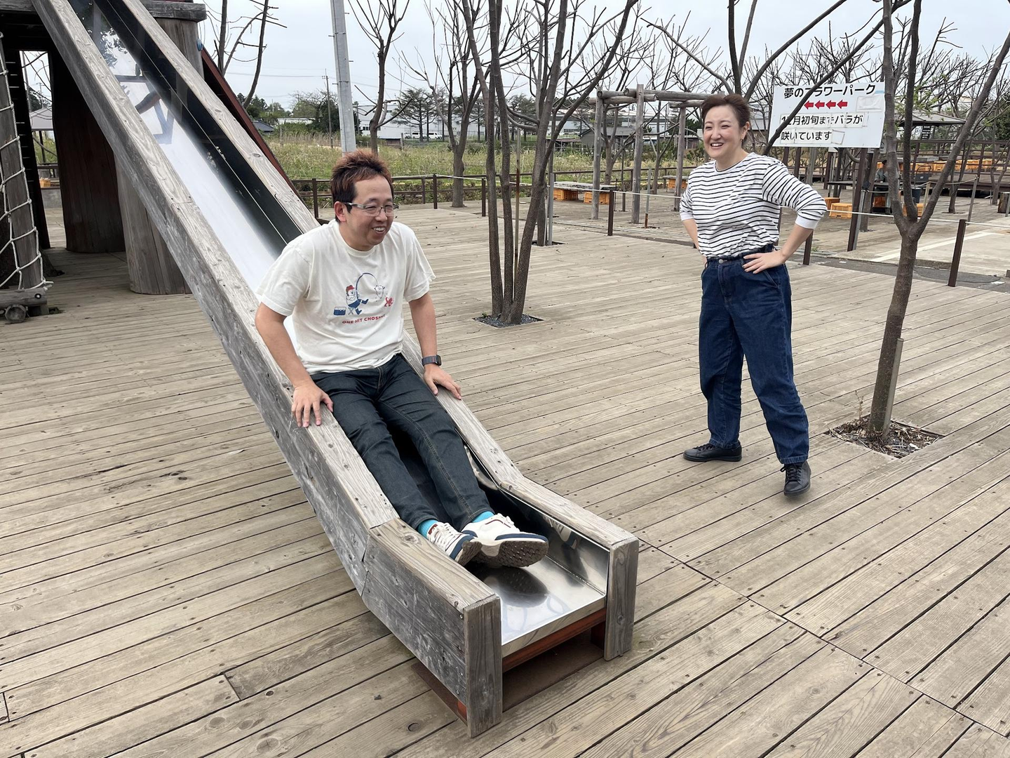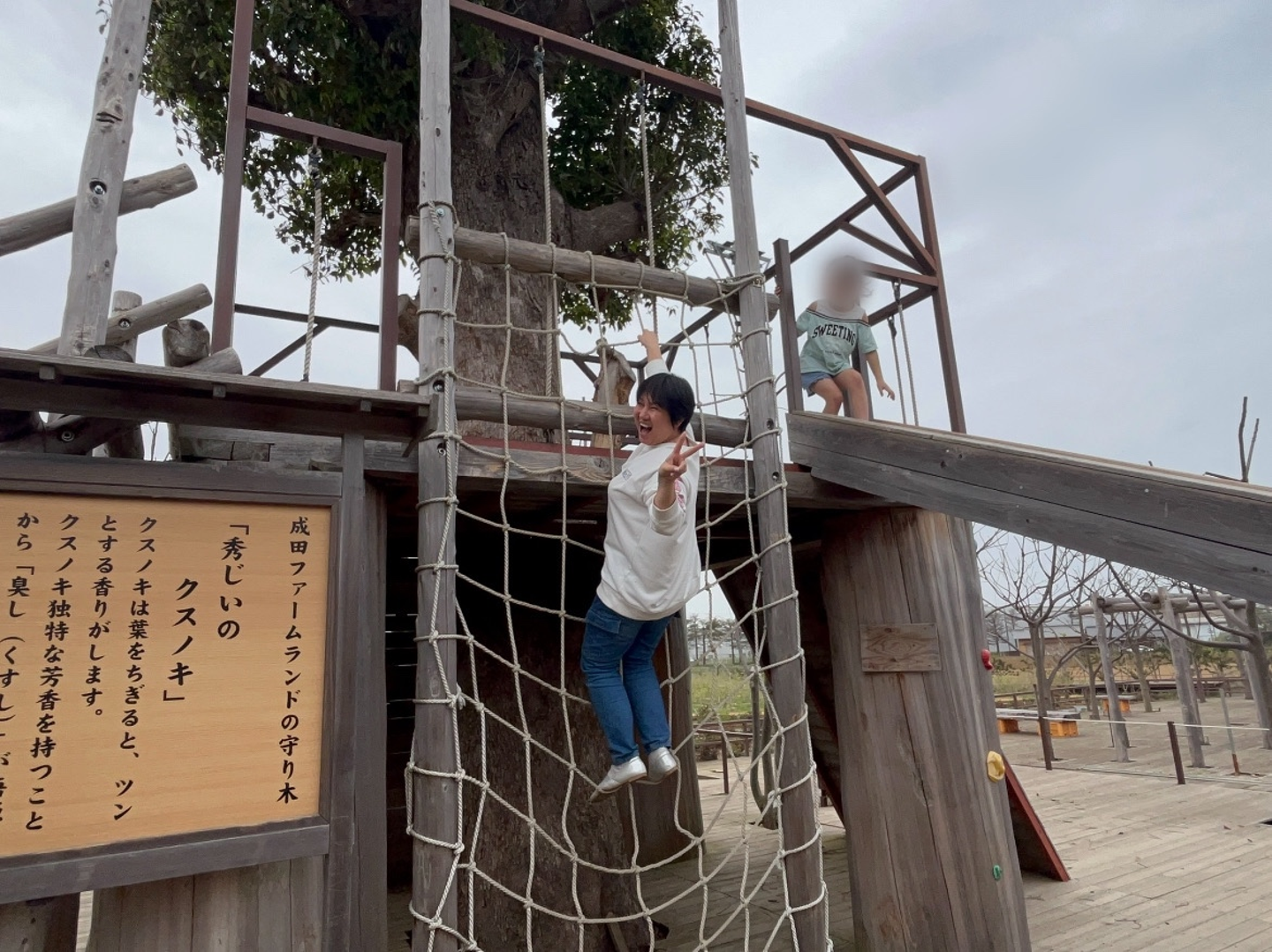 その様子を見て、思わず私も登ってみることに。さらに、他のメンバーも次々と加わり、終いには社長の四宮さんまで登場!まるで子どもに戻ったかのような時間が広がりました。