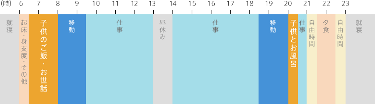 山田の自宅からオフィスまでの移動の時間がなくなることにより、子供との時間をしっかり取れたり、家事を手伝える時間を創出できている事がグラフを見ると分かります。
