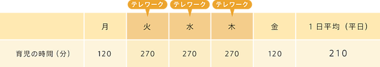 ウィークリーで育児にかけている時間の例