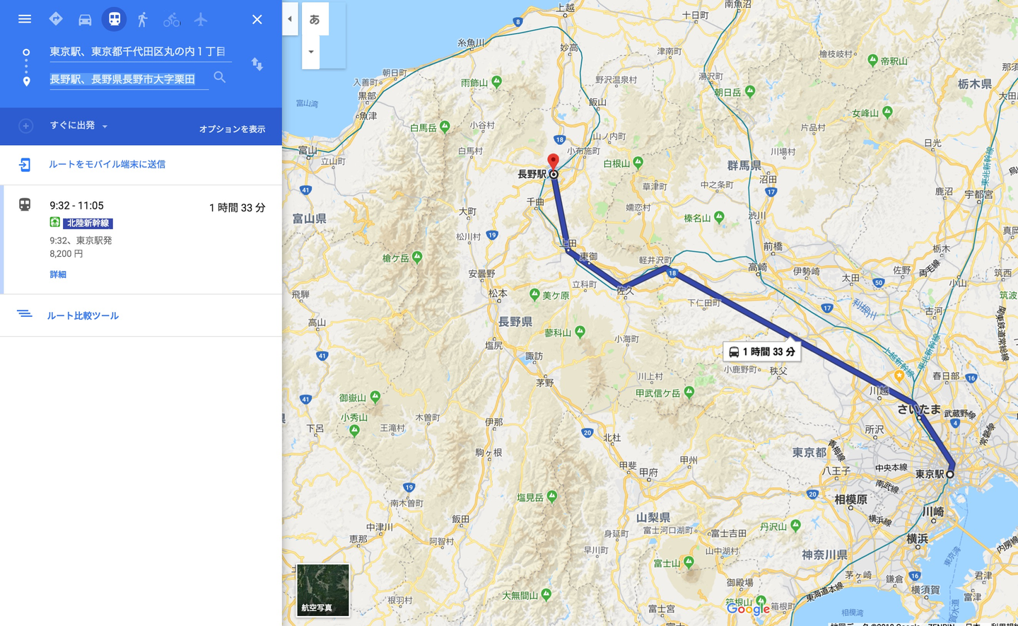 実は近い長野と東京