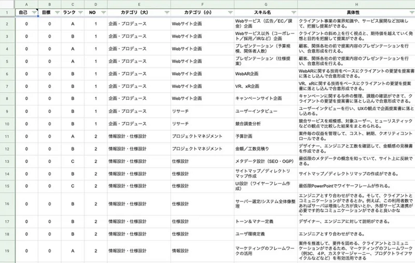 現場ディレクターのキャリアパスを考えた際に、「今何ができて、次何を習得すべきか」を整理する必要があるよね、というスタンスに立って、今回スキルリストで棚卸ししました。
