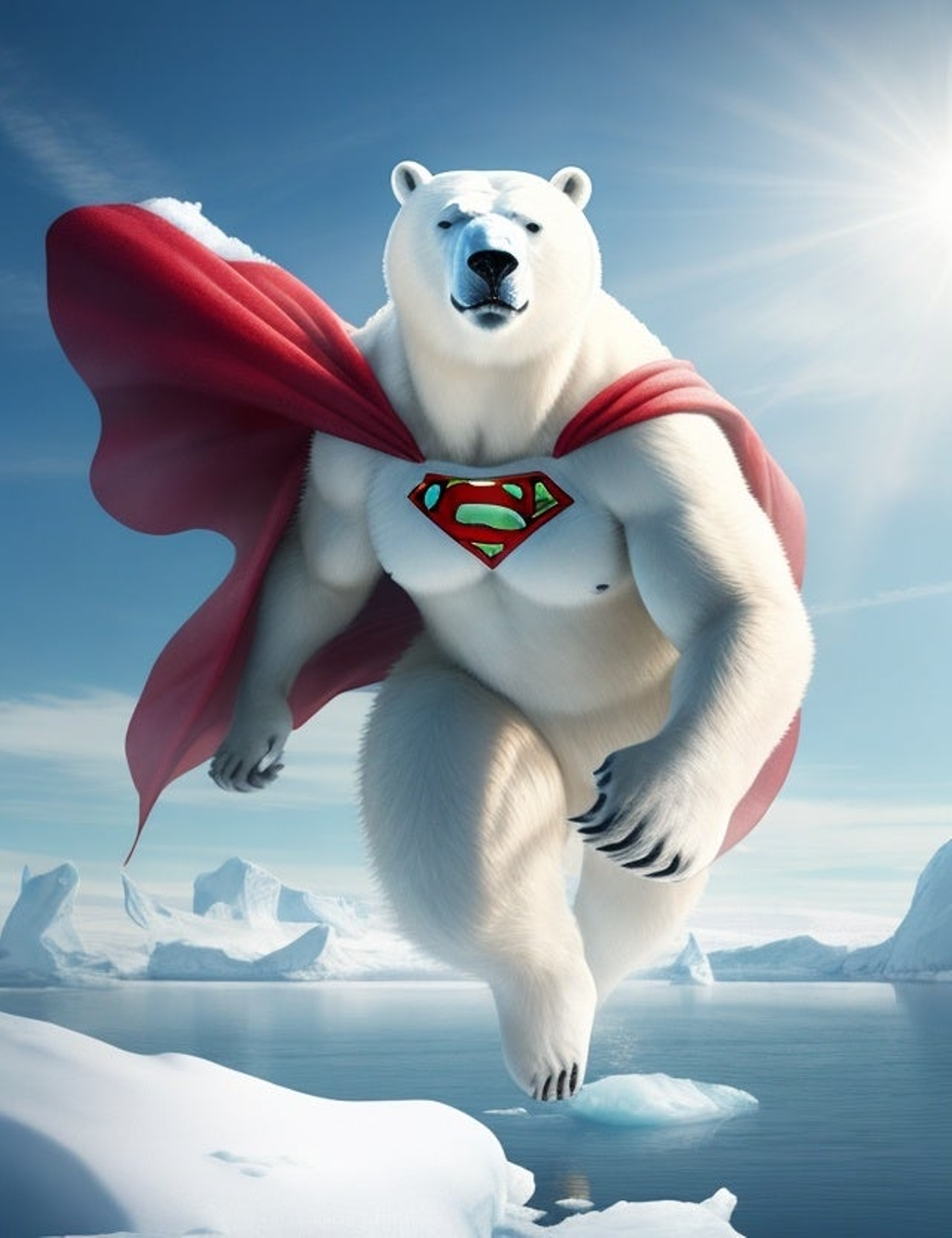 - シロクマとスーパーマンを組み合わせたキャラクターが良い。地球温暖化と戦っていそうで物語の結末が気になる。