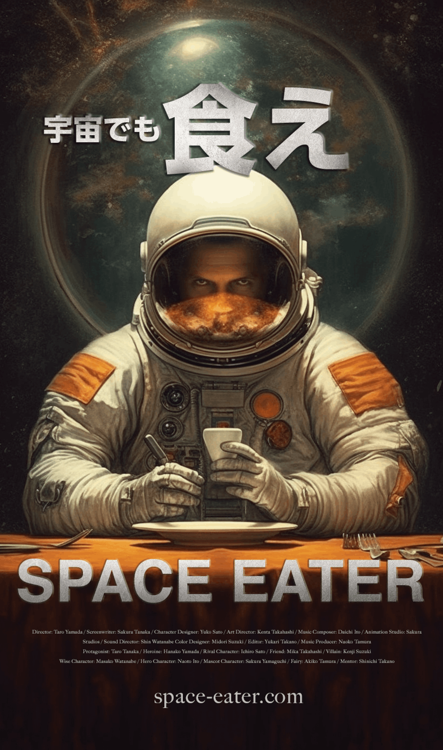 - キャッチコピーや構図がポスターとして目を引く。宇宙という壮大な世界の中で食がテーマなのがおもしろい。