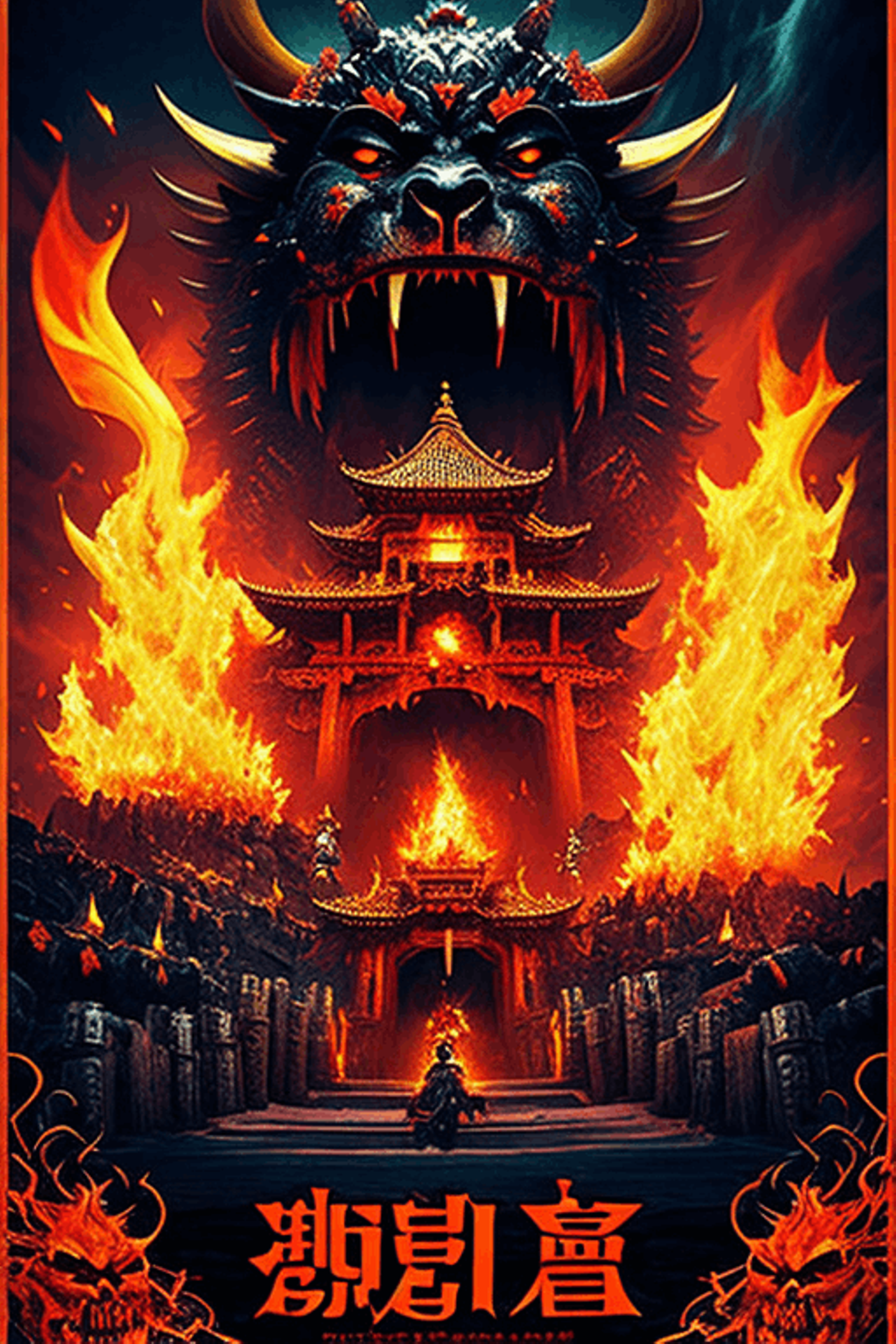 シンメトリーな構図で本当にありそうな門・ポスターのようなレイアウトがいい、なおかつ炎部分はアシンメトリーでアーティスティック。