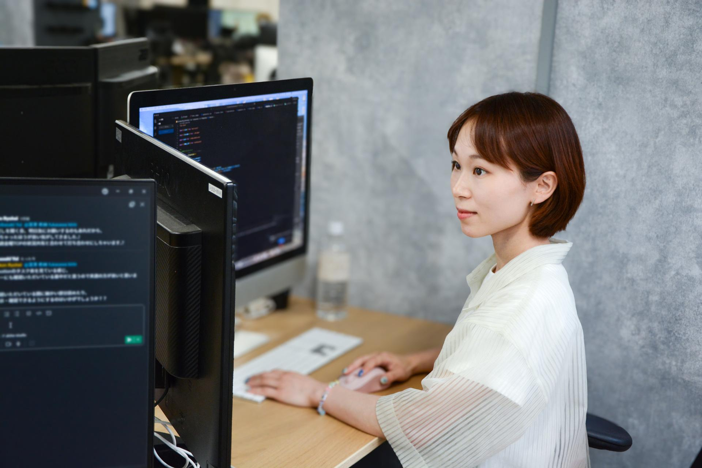 正直、今は目の前の業務をこなすのに必死なんですが(笑)、まずはマークアップに加えて、より幅広いフロントエンド領域にもチャレンジしていきたいです。また以前は先輩社員から指示をもらい制作していましたが、最近はクライアントさんとも接点ができたり、案件の概要や目的をより深く理解した上で業務に臨むことができるようになってきました。これからは、「この技術を使うといい」とか「こうしたらもっと面白くなる」といった提案ができるような、上流工程にも関わっていけるフロントエンドエンジニアになりたいです。
