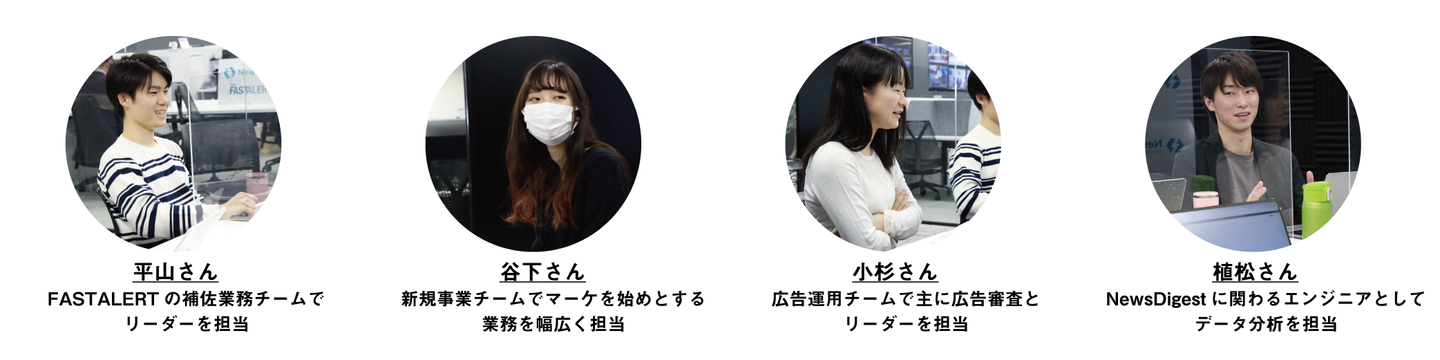 小杉さん:私も高校の先輩から紹介されて始めました。NewsDigest(※2)に掲載する広告の審査を主に担当しています。以前のバイト先での環境に悩んでいたところ、先輩に「働きやすくていいところだよ」と誘われたのでJX通信社を選びました。