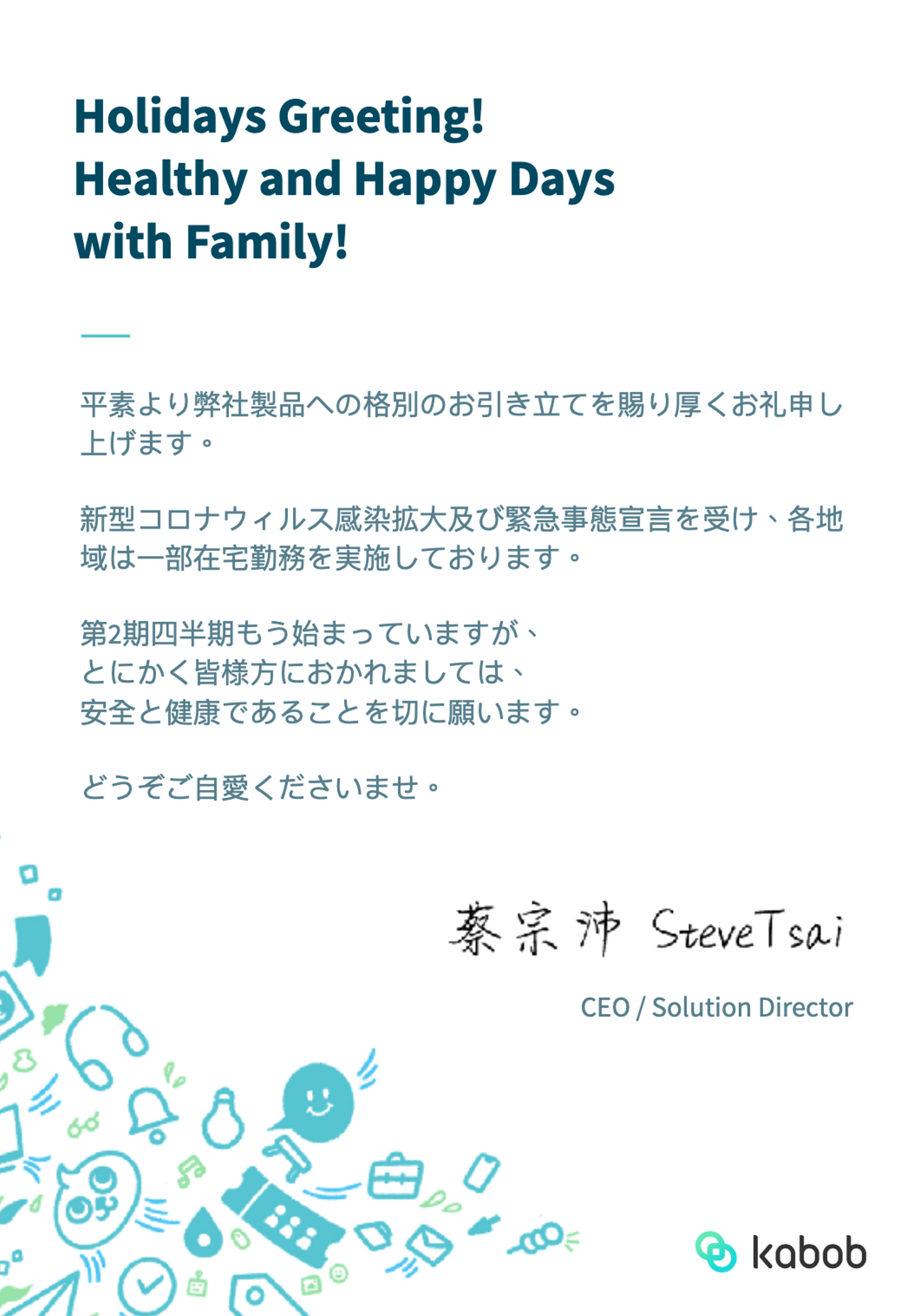In during holidays and COVID-19 Prevention, Thanks for every users’ support at the moment. Few weeks ago, the policy of work-at-home and COVID-19 prevention have been conducted in KABOB Office.