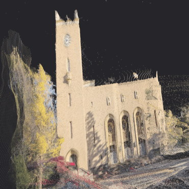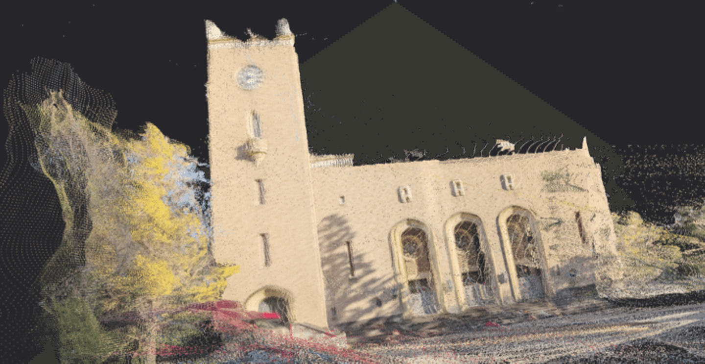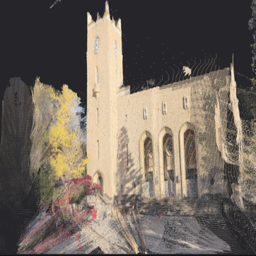 試しに早稲田大学の大隈講堂を撮影し(9枚)、3D点群を再構成してみました。少ない撮影枚数なのに対して、細部まで表現されていて見事です。