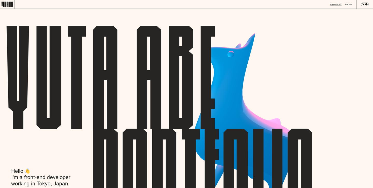 今回紹介するのは、Yuta Abeさんというフロントエンドエンジニアのポートフォリオサイトになります。