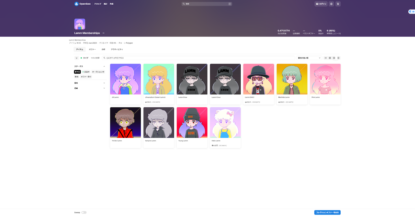 引用元:https://opensea.io/ja/collection/lamm-memberships