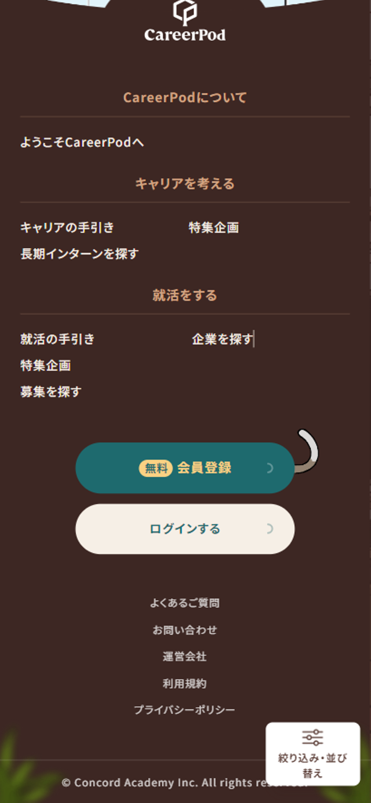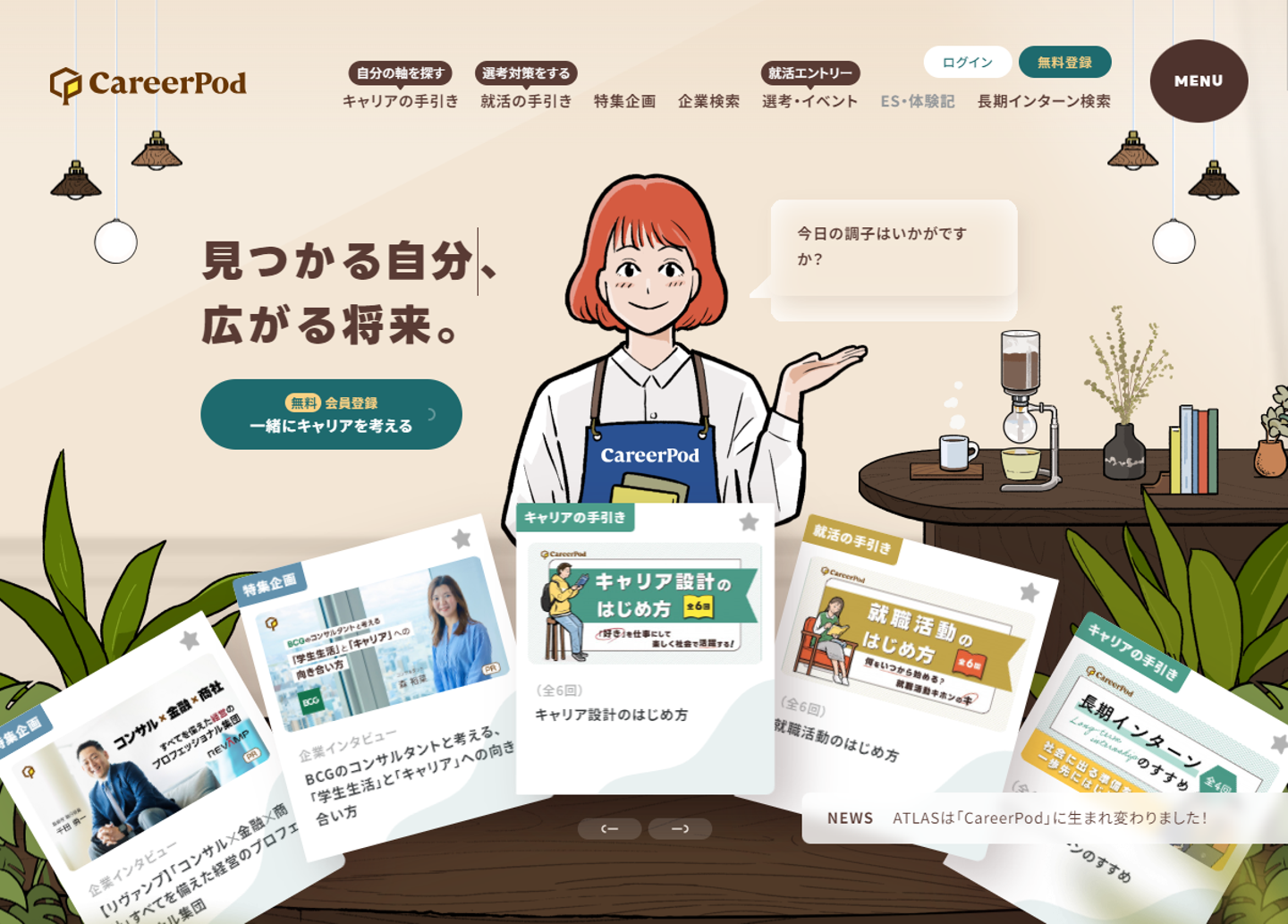 コンセプトがスロー就活なので、そこから連想して「カフェ」みたいな世界観になった感じがしますね。