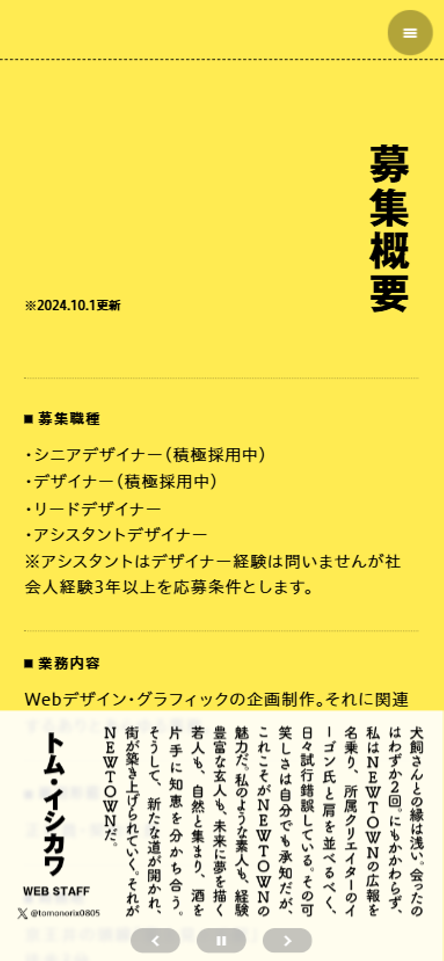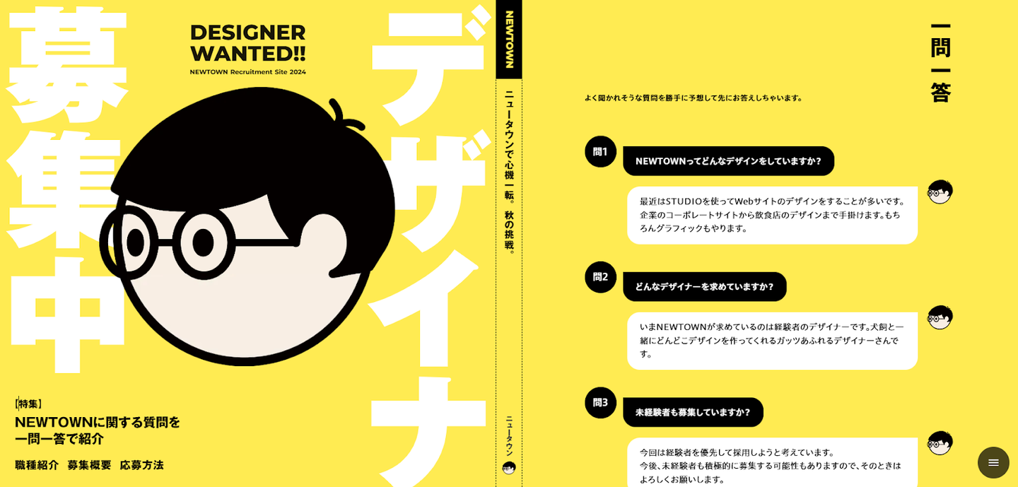 NEWTOWNさんのデザイナー募集の採用サイトですね。