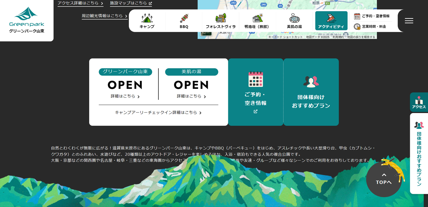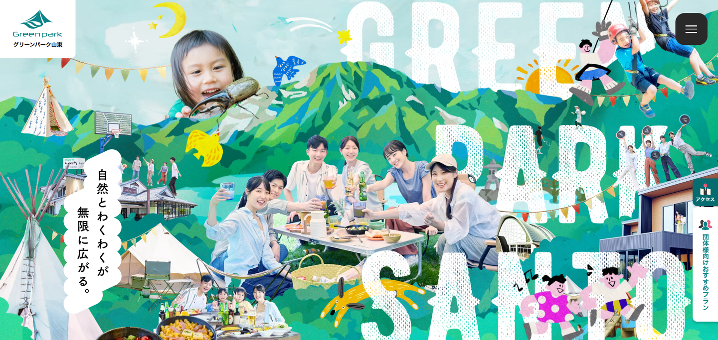 今日は、『グリーンパーク山東』という20種類以上のアウトドア・レジャー 施設が勢揃いする、総合アウトドア・スポーツ複合公園のWebサイトを紹介します。