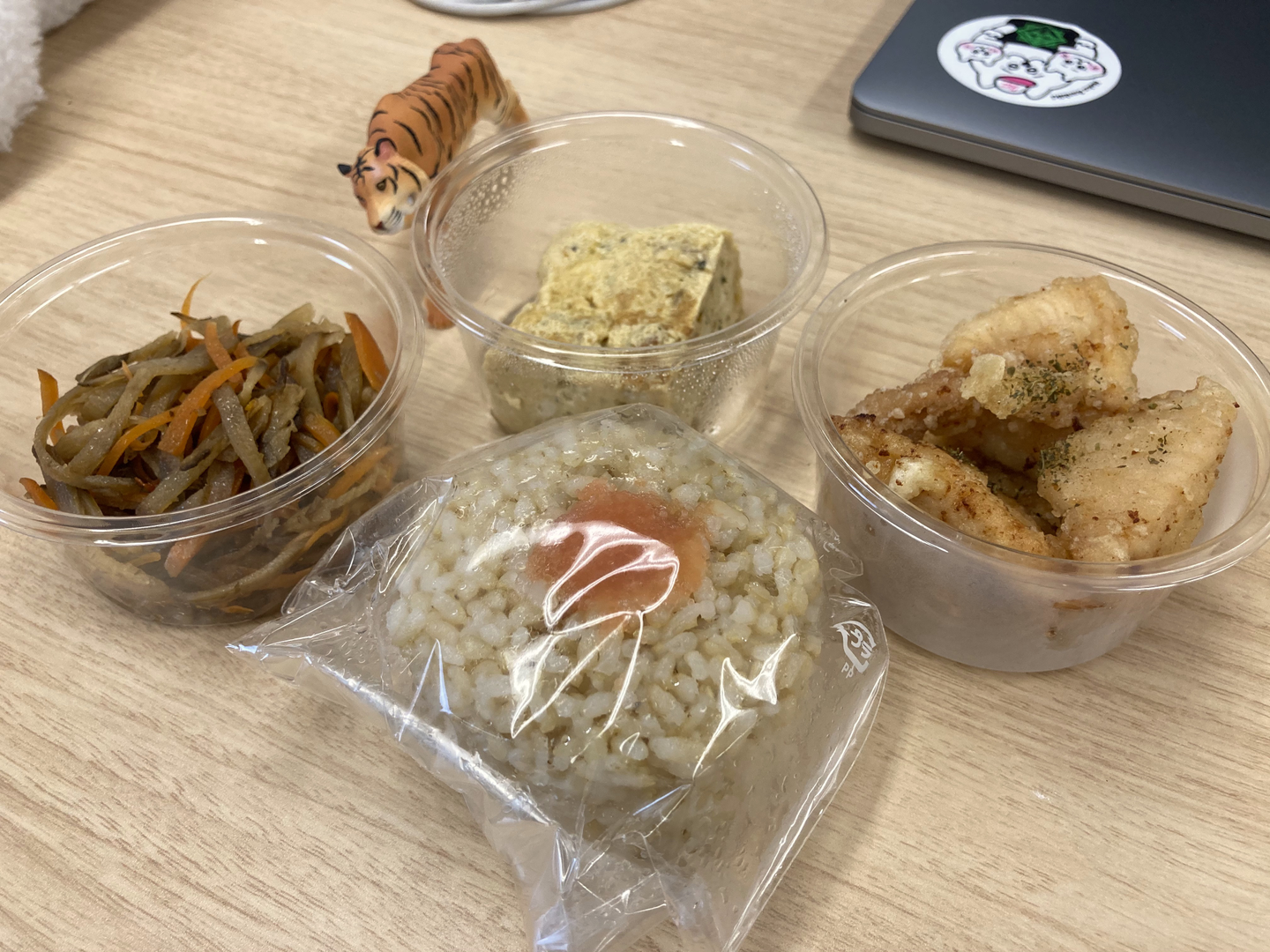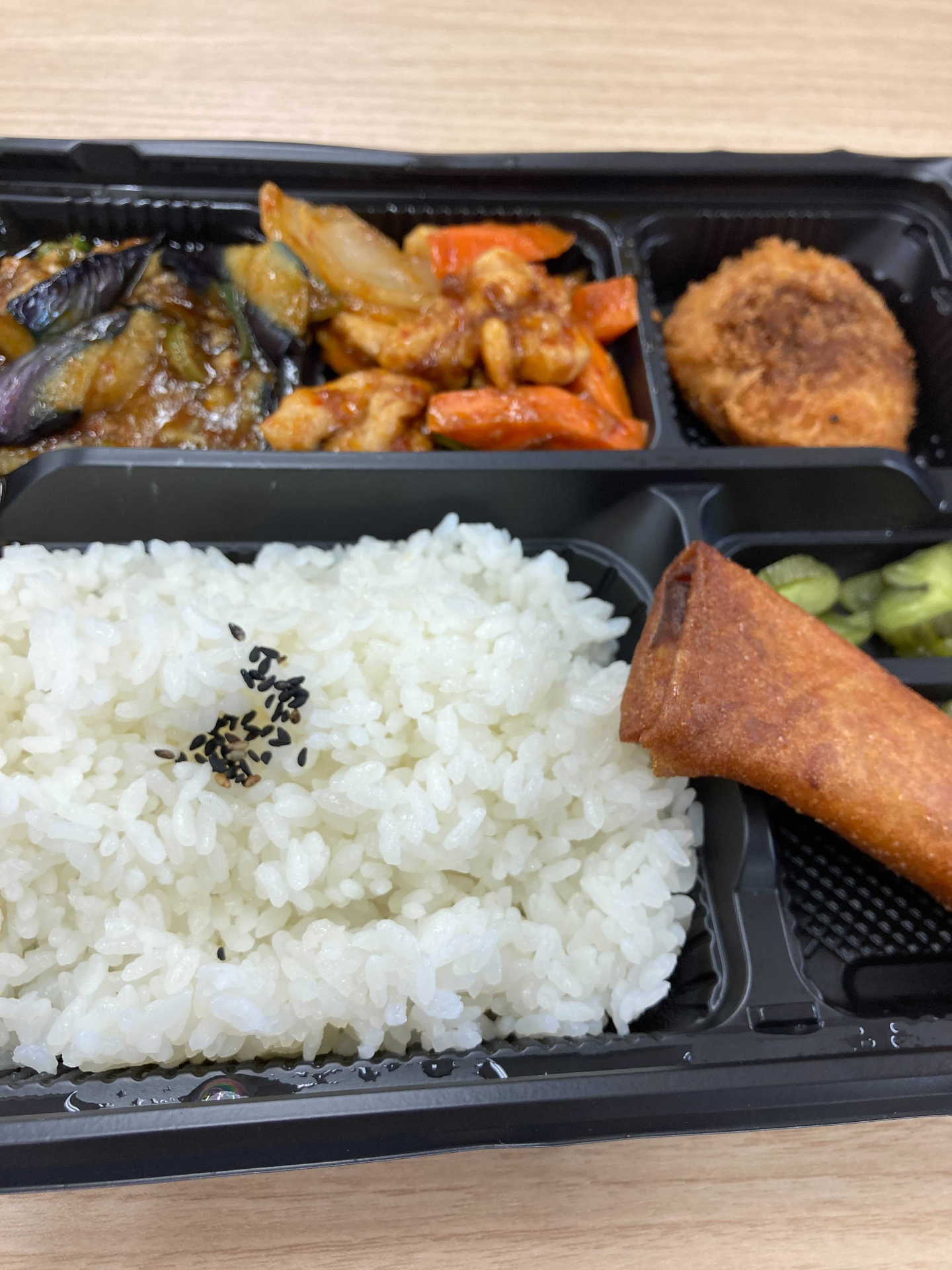 こちらの写真は、カスタマーサクセスの長身メンバーからいただきました。麻婆茄子と鳥のカシューナッツ炒めに揚げ物2つ。かなりのボリュームですね。『近い(すぐそば)・安い(500円)・うまい(80点)・早い(できているものから選ぶ)・量多い(かなり)で助かってます。』とのこと。