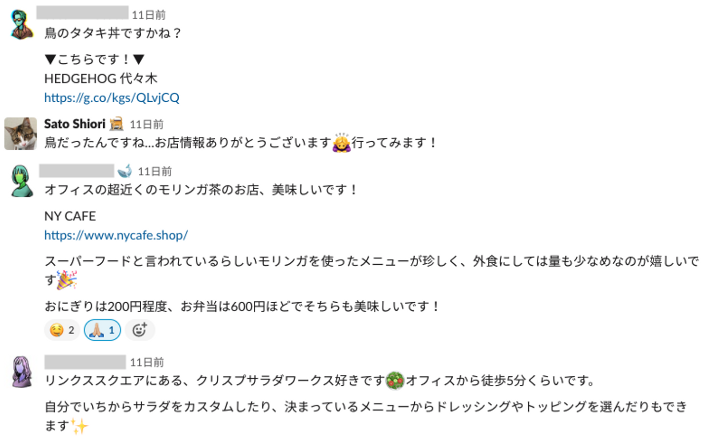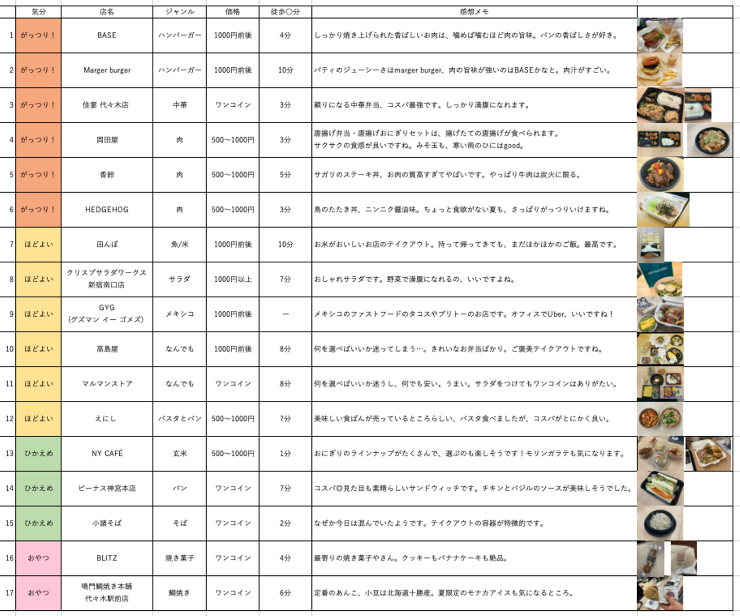 好奇心旺盛なわたし(特に食べ物)、教えていただいたお店全部行ってきました。情報と感想はスプレッドシートにまとめて全社に公開しました。お昼ご飯の参考にしていただけると嬉しいです。