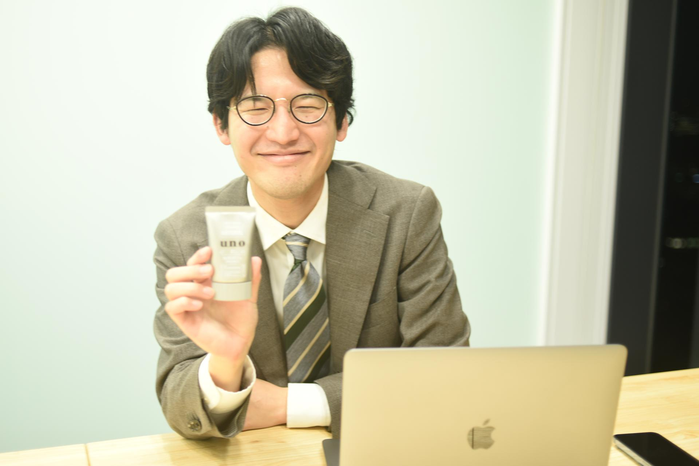 (メンズコスメでお肌を整えてきてくれたSさん。インタビューへの準備の入念さに頭が下がります。)