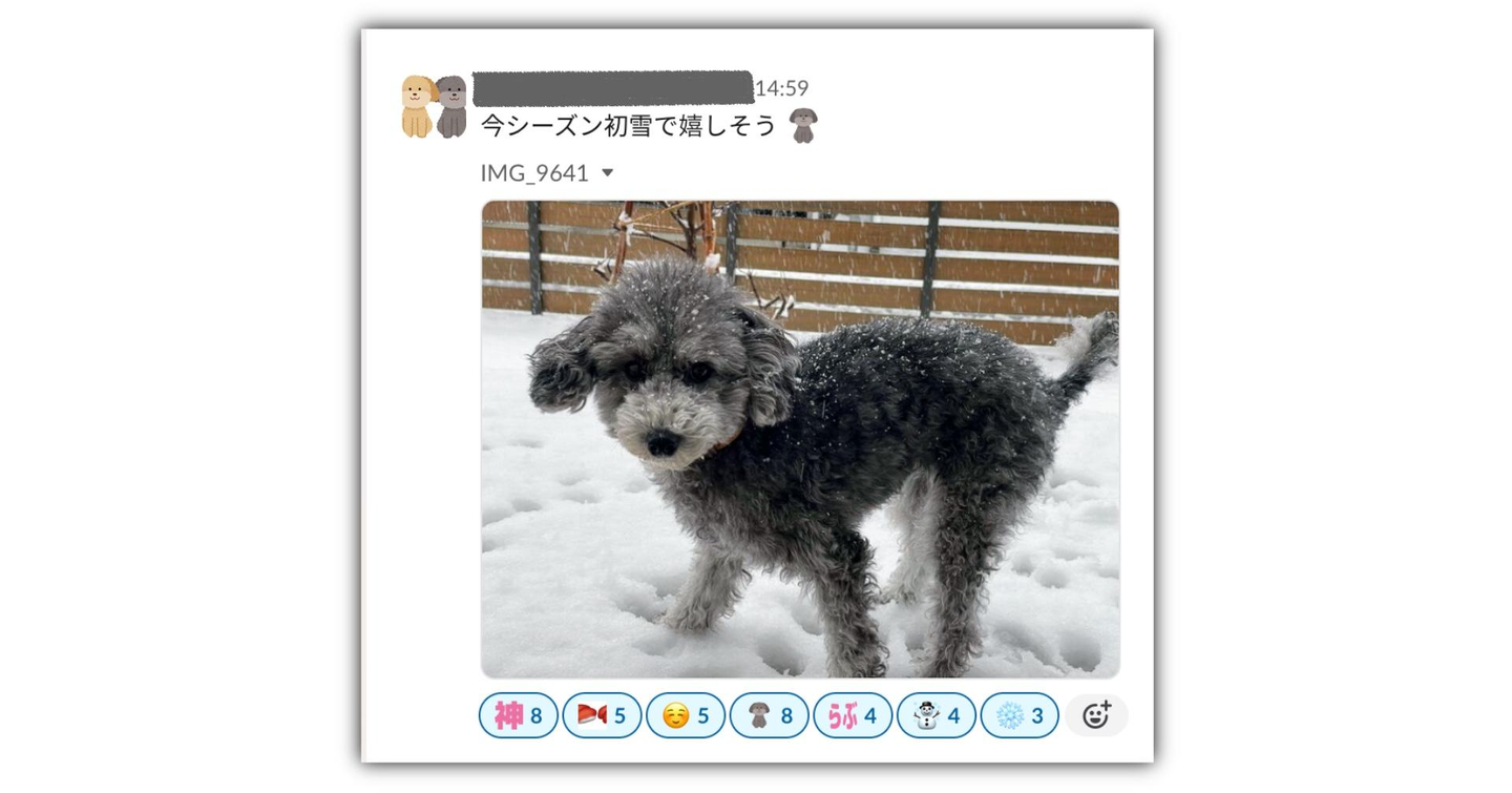 こちらは、新潟県からリモートで勤務しているエンジニアKさんのお家のワンちゃん。この記事にも登場しています。