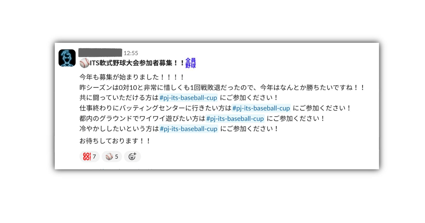 最近はエンジニアOさんから野球大会参加のお誘いがありました。今年はどんな試合になるんでしょうか。野球部出身のOさん、卓球にフットサル、ボードゲームと、業務外の活動にも積極的で、率先して声かけをしてくれる頼もしい存在です!