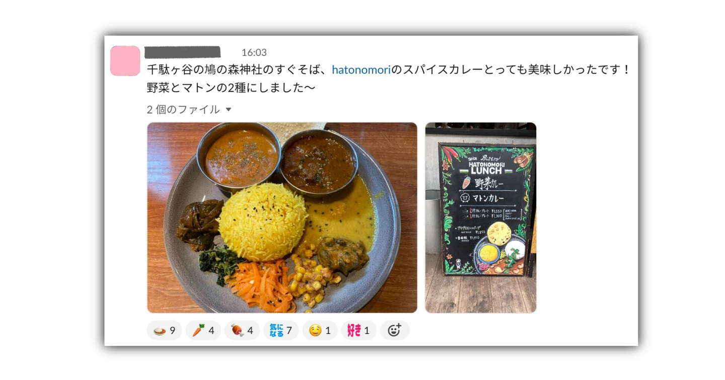オフィス近辺のランチ情報が集まるチャンネルにも、とても助けられています。ランチのお店に困った時、仕事の後の晩御飯に行きたい時...。プライベートでも参考にしているんです。