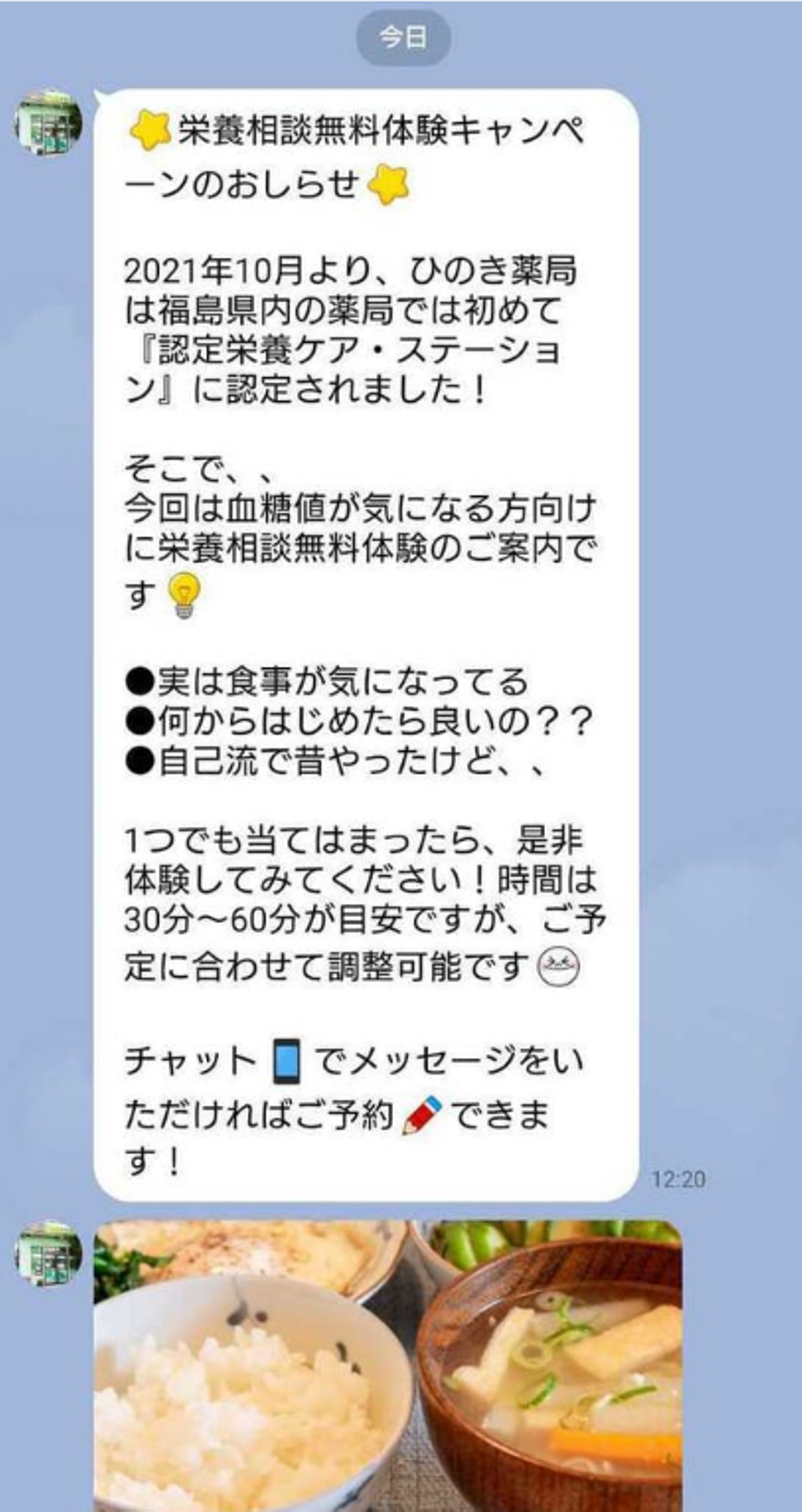 送信内容:無料の栄養指導のご案内